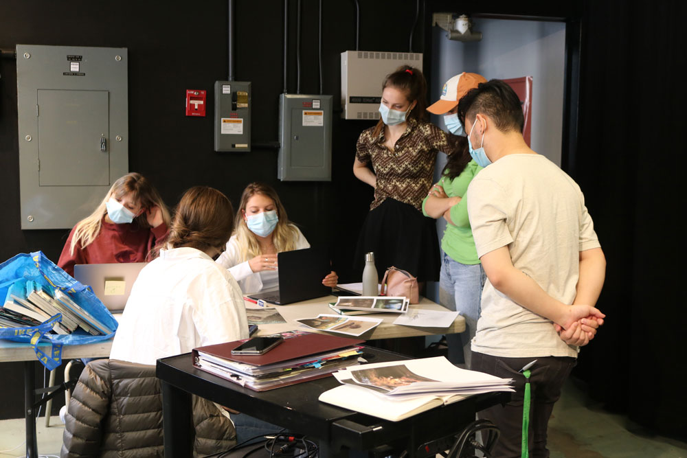 Dans le cadre du cours de Mise en scène et langages scéniques, les étudiantes et étudiants s’associent à des professionnels des arts de la scène pour concevoir et réaliser le décor, les costumes, l’éclairage et l’univers sonore.