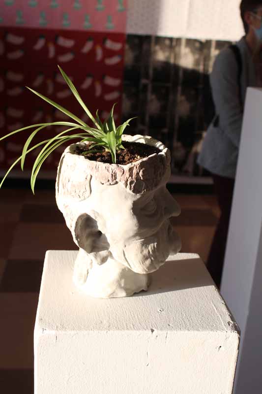 Enfin, Félix Roy, en première année en Arts visuels et design, présente des dessins et des sculptures. Comme beaucoup de ses camarades, il a vraiment apprécié le travail en groupe dans les locaux et en présence. « Même si l’on avait beaucoup de projets à faire ensemble et que c’était dur, c’était le fun », nous dit-il! Plus tard, il pense aller en design de mode.